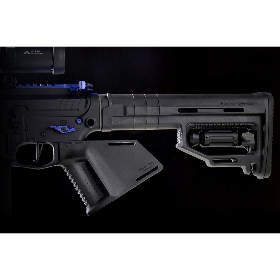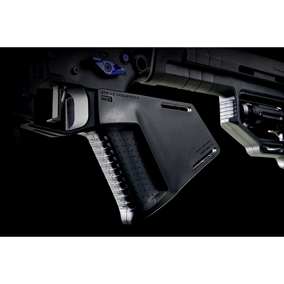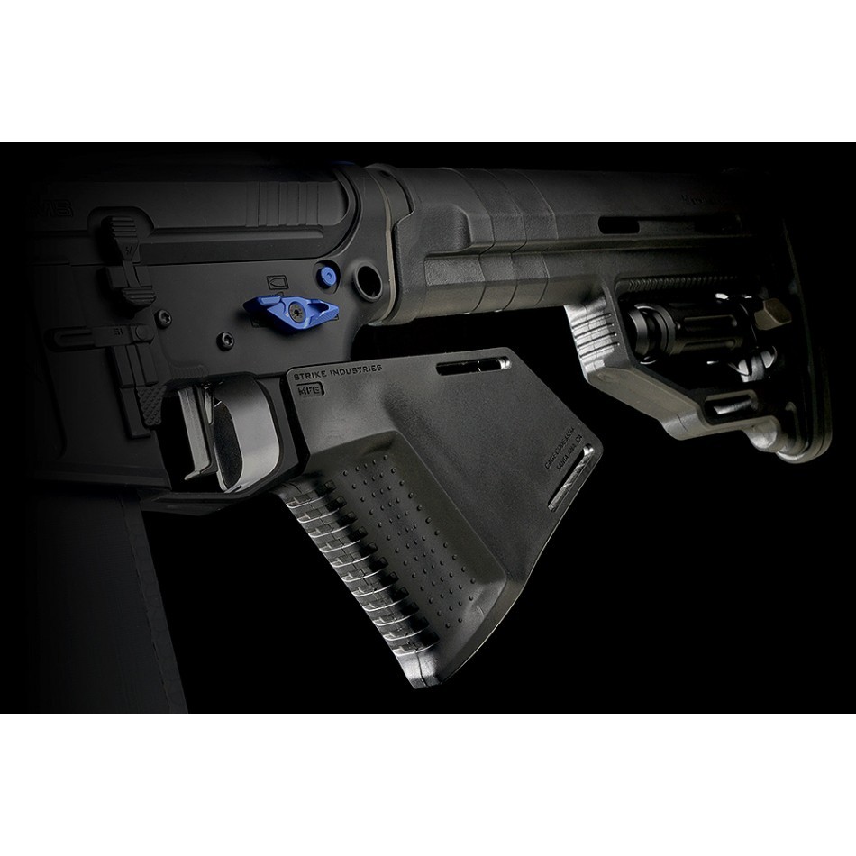 The SI Megafin Featureless grip has been designed from inception specifically to provide an ergonomic solution to build a featureless AR. Our especially designed grip texture ensures security when maneuvering while the contour fills the palm for comfort, and the built in finger bump provides both leverage and correct trigger finger placement. Combine with a Strike Industries Strike Switch (sold separately) ambidextrous safety for a no compromise featureless AR build.